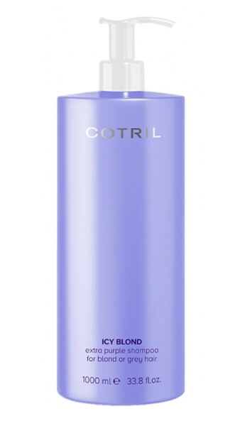 Шампунь для інтенсивного холодного блонду Cotril Icy Blond Extra Purple Shampoo For Blond Or Grey для професійного використання з більшою концентрацією фіолетового пігменту, ідеально підходить для нейтралізації небажаних відтінків на світлому, знебарвленому або сивому волоссі.
