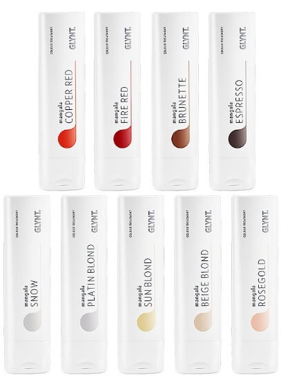 Тонуючі процедури Mangala поєднують у собі догляд та оновлення кольору. Маска Mangala робить поверхню волосся гладкою, надає сяючого вигляду. Велика палітра різних колорів маски сподобається усім сучасним дівчатам: Mangala snow, cherry, espresso, beige blonde, copper, platin blonde, rosegold