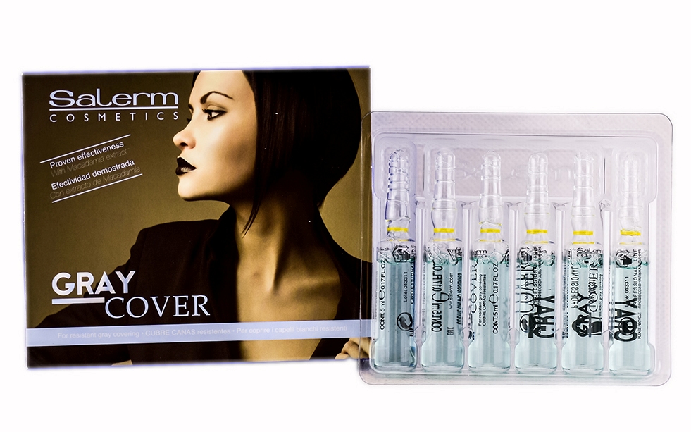 Salerm Gray Cover Ампульное средство для лучшего окрашивания седины-это уникальный препарат для безупречного результата окрашивания на трудноподдающихся окрашиванию седых волосах.