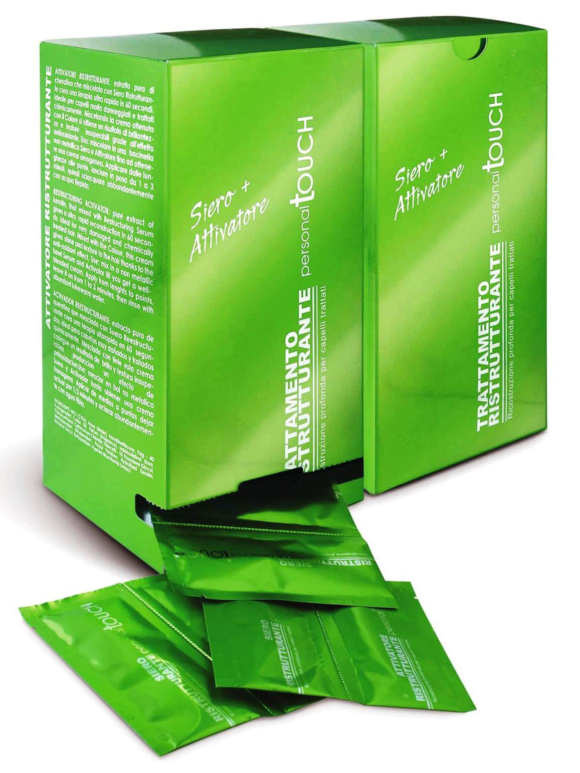 Лечебная реконструирующая сыворотка Personsal Touh. Сыворотка и активатор с кератином, позволяют кератину проникнуть глубоко в структуру волос, способствуя, заполнению всей стволовой структуры белковыми соединениями, увлажняющими и питательными веществами, которые мгновенно восстанавливают ослабленные, пористые и поврежденные волосы, придавая волосам целостность, здоровое состояние и сияющий вид. В состав сыворотки входят кератин, касторовое масло и экстракт красных водорослей.Не нуждается в дополнительном термическом или механическом воздействии. Может использоваться самостоятельно, как процедура экспресс-восстановления, либо в составе Комплекса реконструкций Капля света Drops of Light и Color Shine Reflexion.