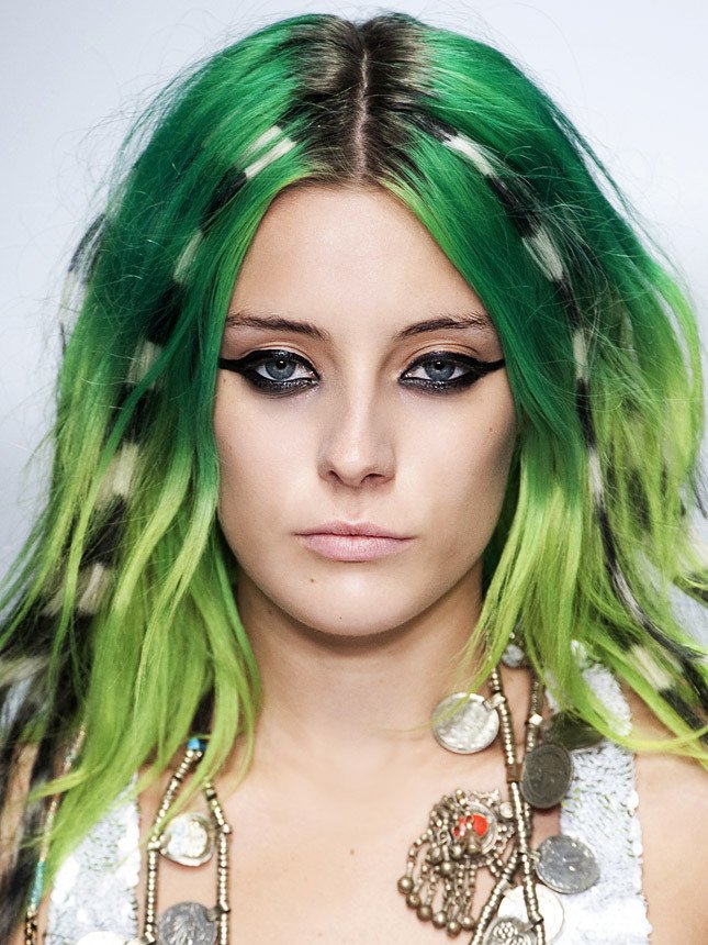 Fluo Hair Clour green Зеленая краска-спрей не вредит волосам. Идеально ложится на волосы.